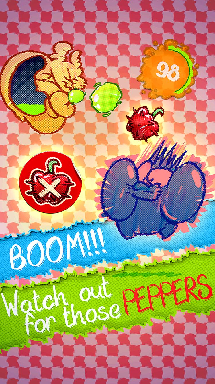 ما عليك سوى لمس الشاشة للفتح على نطاق واسع وتركها لإغلاق فم Nomster لمنع القنابل السيئة الكبيرة.